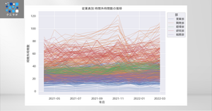 - グラフに所属の平均在籍人数を追記し、相対的に人数の多い部署や少ない部署を確認する。